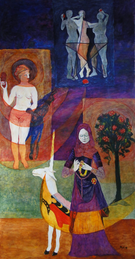 After art school I mainly made pen drawings in which atmosphere was a central theme. After that I felt the need to paint more freely with acrylic and oil paint. People in their emotions, their actions and behavior become the source of inspiration in both abstract and realistic form. In the nineties I focused more on mythological figures as a metaphor to make visible the battle of the titans that rages (in)visibly in every human being. In this way I tried to connect the inner and outer world, sometimes in harmony, then again full of tension. Later the attention in my work shifted to the meeting of light and dark, the fight in man between delusion and reality. In the years that followed, mythology returned to my work. At that time I mainly focused on Egyptian mythology, in which rituals around death and the afterlife were the subjects. Recently, women in all their manifestations, for example in portraits, have returned. Sometimes I divide a composition into different parts that each breathe their own atmosphere. This can be done in one work, but also with multiple panels. I live and work as a visual artist in 's-Hertogenbosch, the Netherlands.