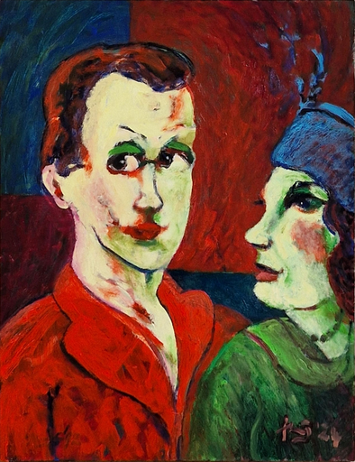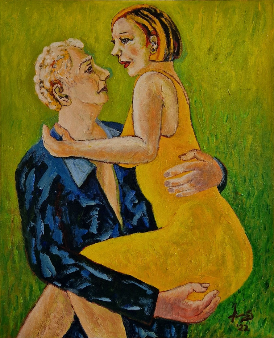 'Lovers'. Look, he is carrying her. But does she want to? Yes, look at the way she holds his head. But those eyes... She does have that head, but perhaps she has lost her heart, really lost I mean. And on the other hand. 'Balancing'. A young man (incidentally an idealized self-portrait of the painter), pours water from one jug into the other to restore the balance. In this restoration, a lot of liquid is lost, but both the young man and the liquid seem to have long since passed the limit of any limitation. 'Vote ANC'. On the one hand, this painting is much more of a statement than the lyrical question marks that just passed by. But nevertheless, above all an image. A colorful image. An image of a colorful hopelessness. And I could go on like this for a while, when it comes to paintings with an intrigue. I won't, go and see for yourself. On the other hand, there are also a number of paintings in this exhibition that, if I may say so, are enough on their own. A feast of image and color. Pure lyricism. Poppies that have completely lost their vulnerability, so that they robustly dominate the image as mere areas of colour.